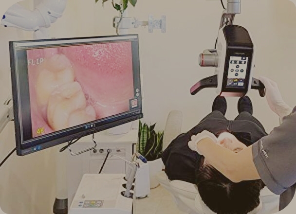 当院ではマイクロスコープ「ネクストビジョン」を導入し、精密な検査・治療に活用しています。ルーペでは確認できない細部まで拡大し、モニターを見ながら治療が可能です。