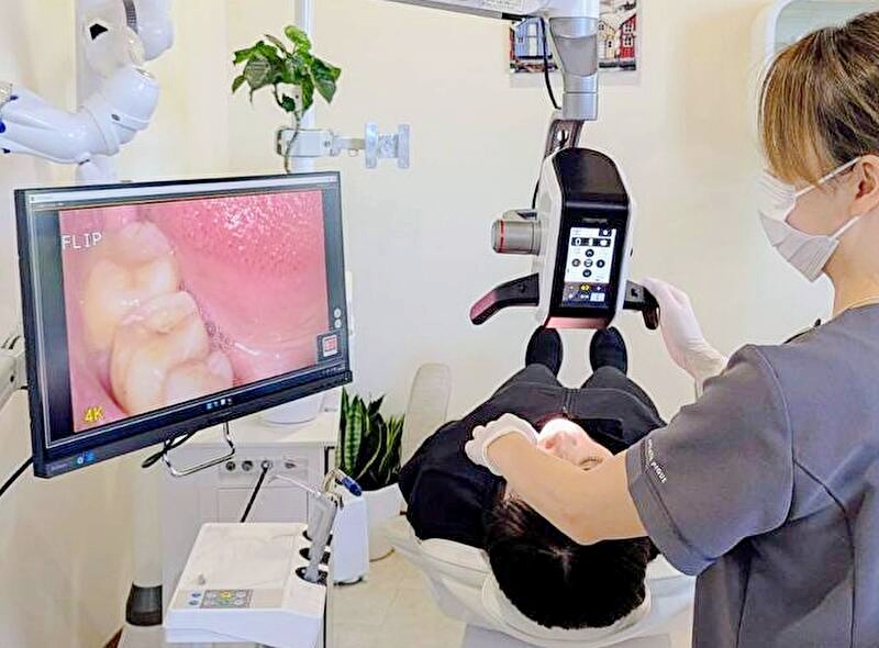 当院では「ネクストビジョン」というマイクロスコープを導入し、保険診療・自費診療に関係なく使用しています。80倍まで拡大でき、また裏側の見えにくい部位でも映すことができるので、治療の精度が格段に向上します。